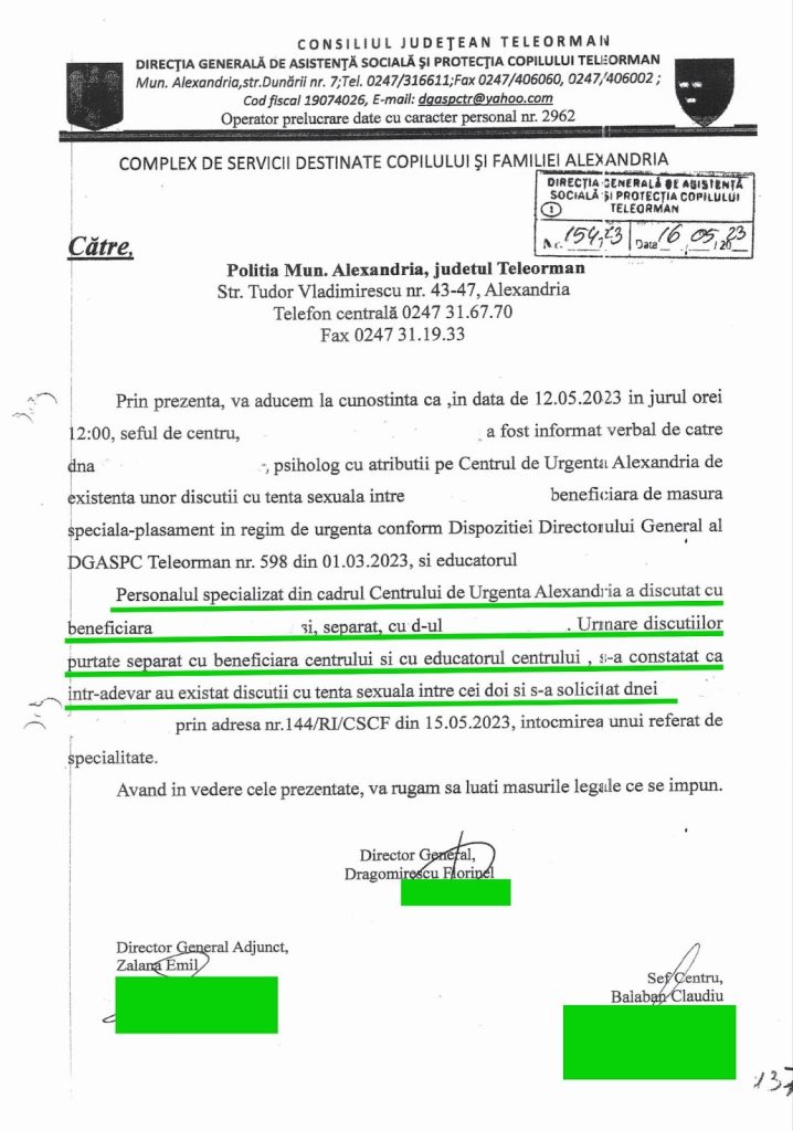 Balaban trimite mai multe adrese către DGASPC Teleorman și sesizează Poliția Alexandria (16 mai 2023).
